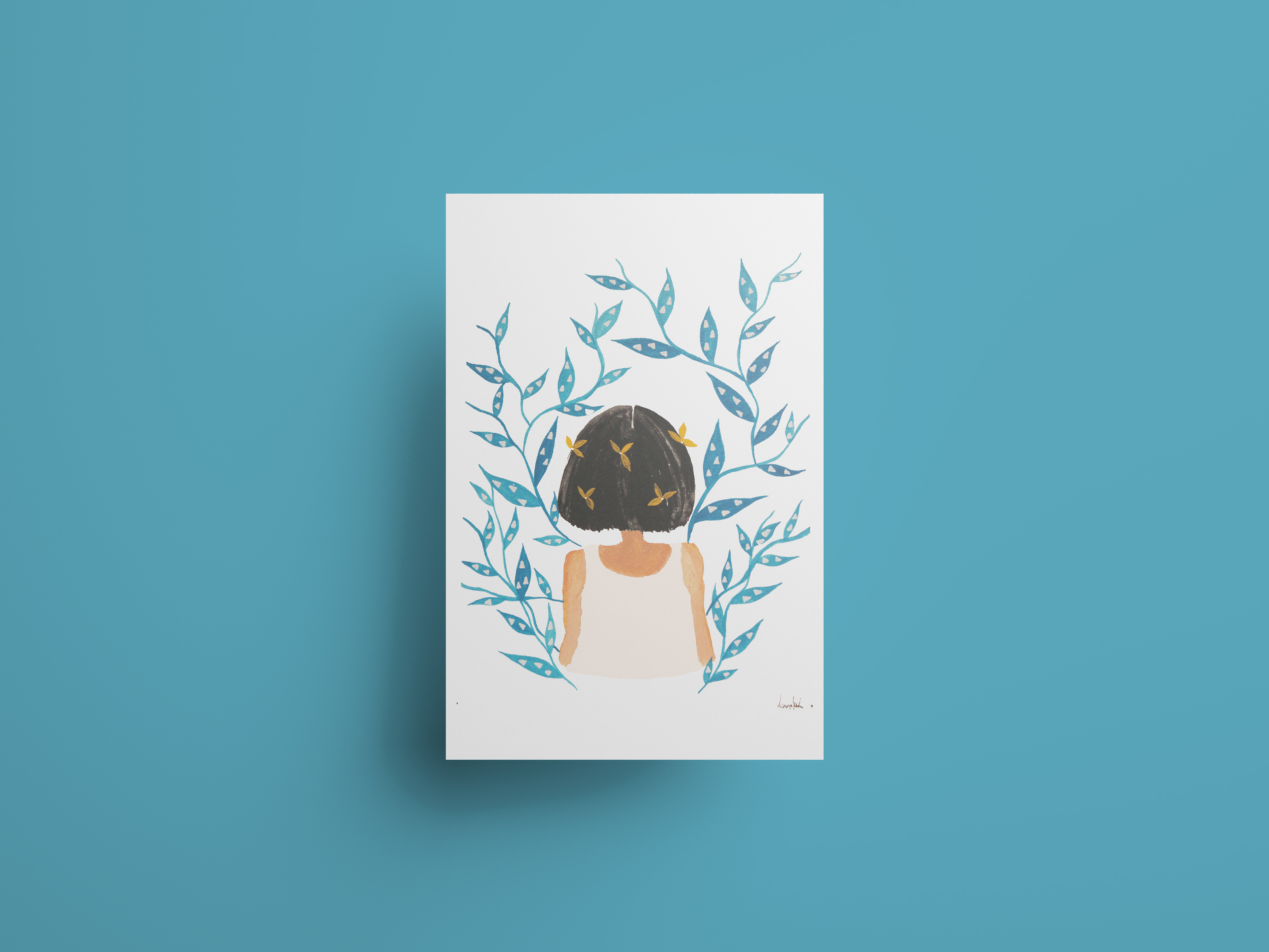 L - Indigo Dreams, Watercolour on paper, 14 X 21 cm (self portrait)